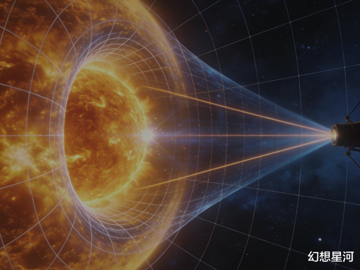 这就是爱因斯坦提出的等效原理,也是广义相对论的起点。他意识到,引力和加速度带来的效果完全无法区分,这意味着引力可能不是物体之间的相互作用,而是时空本身的属性。原本平坦的时空会因质量和能量发生弯曲,我们身处其中,无法直接观测这种弯曲,只能通过现象感知。太阳的巨大质量把周围的时空压出了一个弧形轨道,地球顺着这个最省力的路径运动,这才是地球绕着太阳转的原因,而非太阳在拉着地球。
